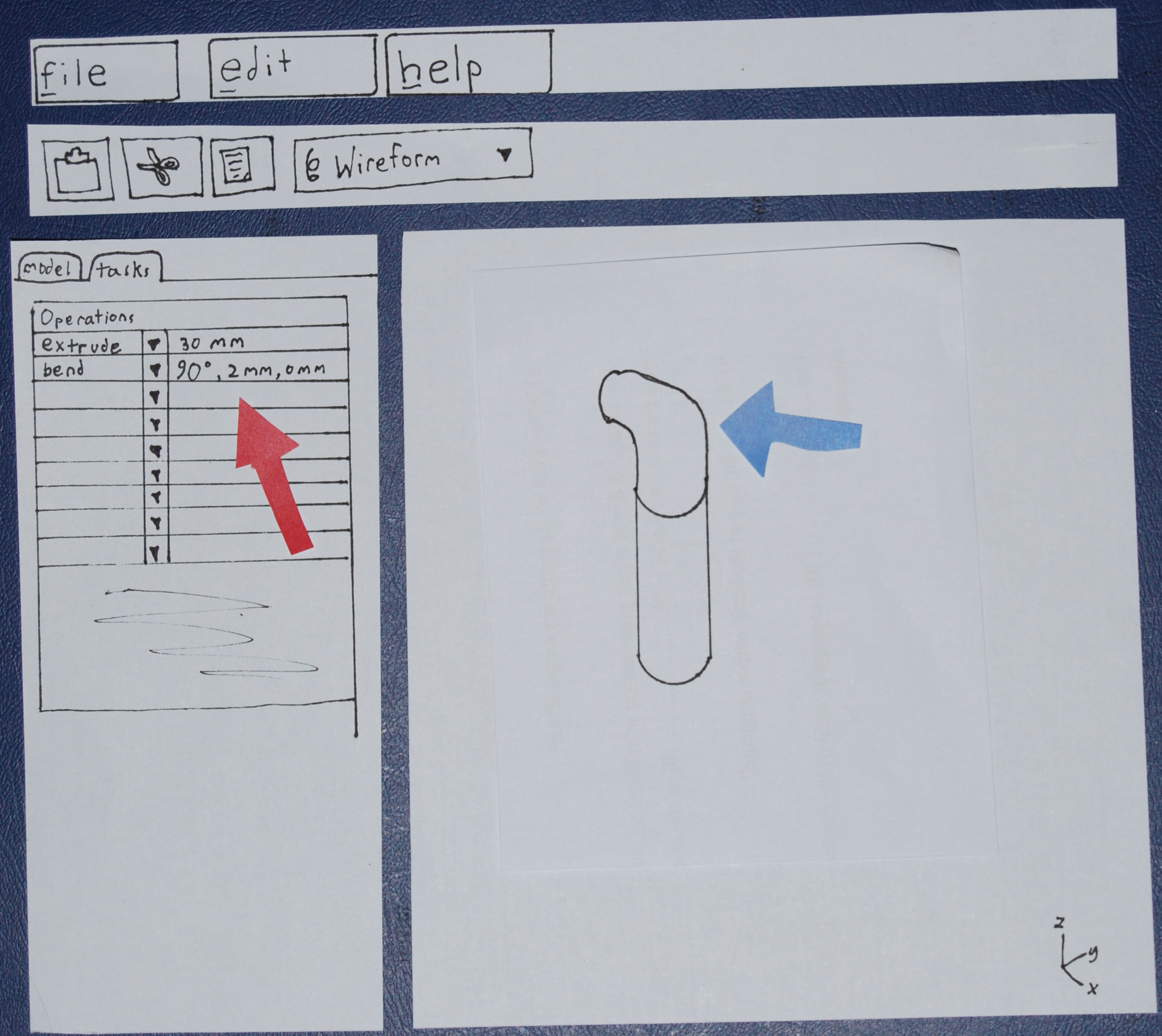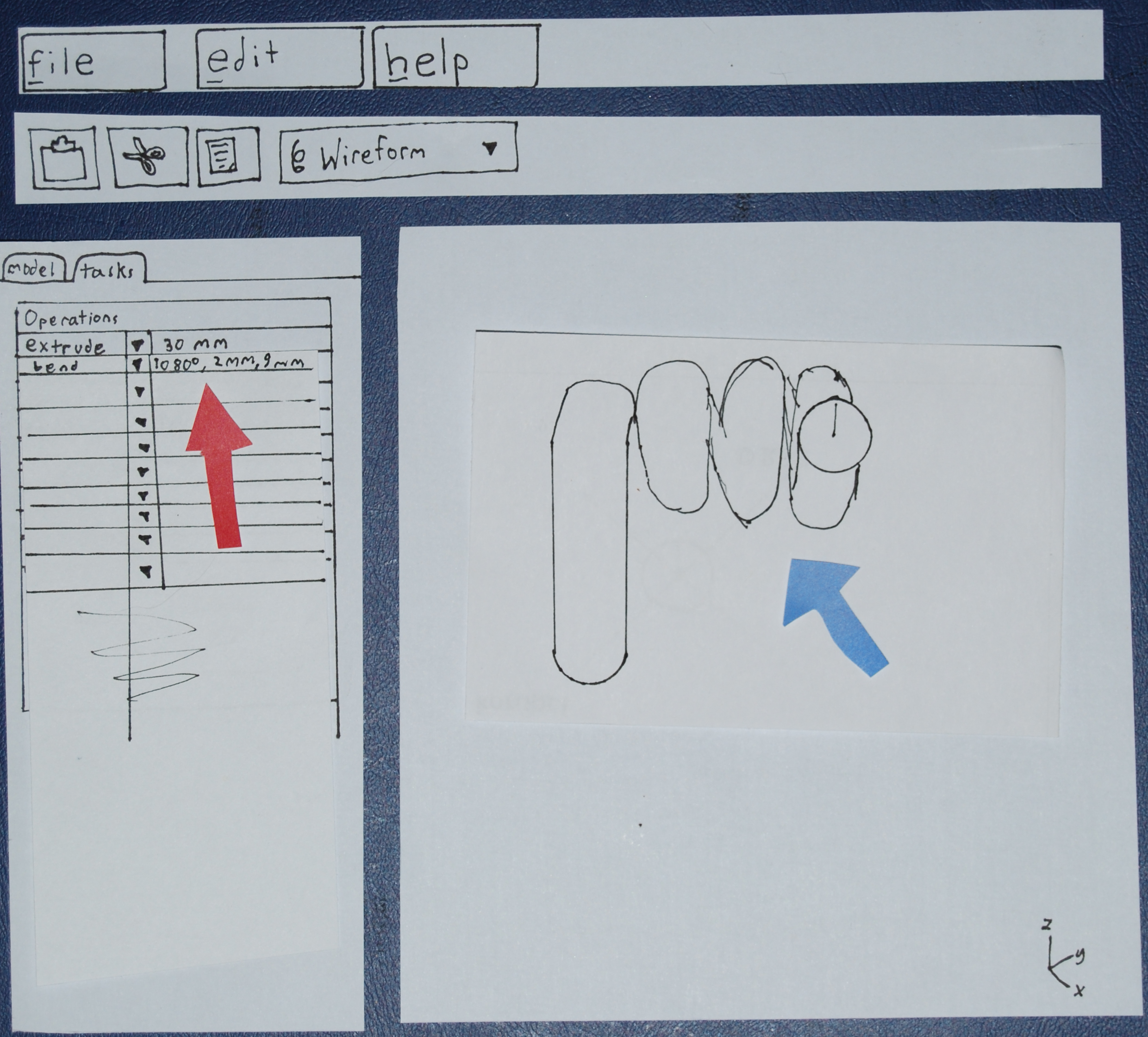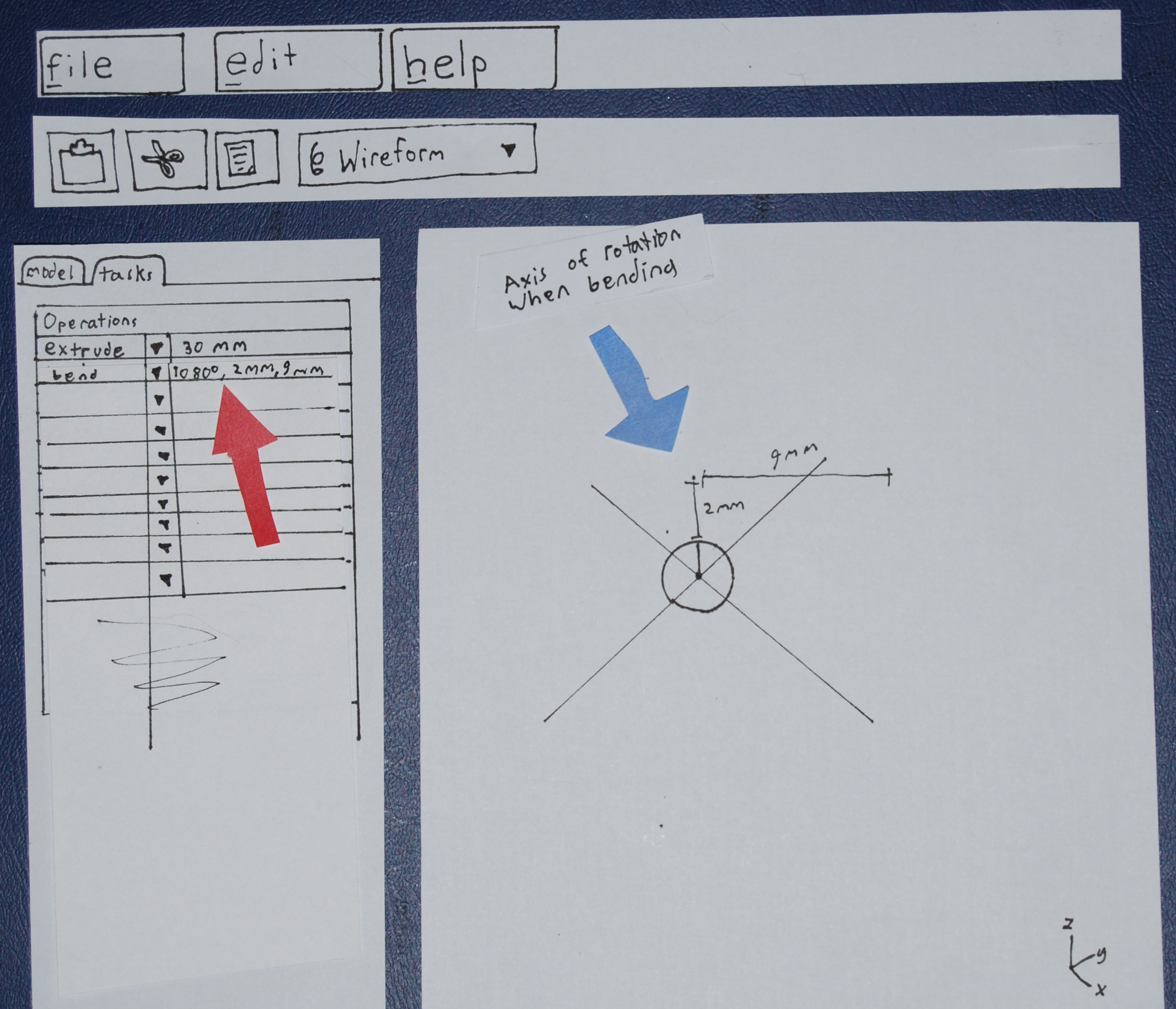 If you were to place a plane upon the end of our wire, and place a perpendicular plane 2mm from the end of our center line then the intersection of the two planes would form our axial rod.