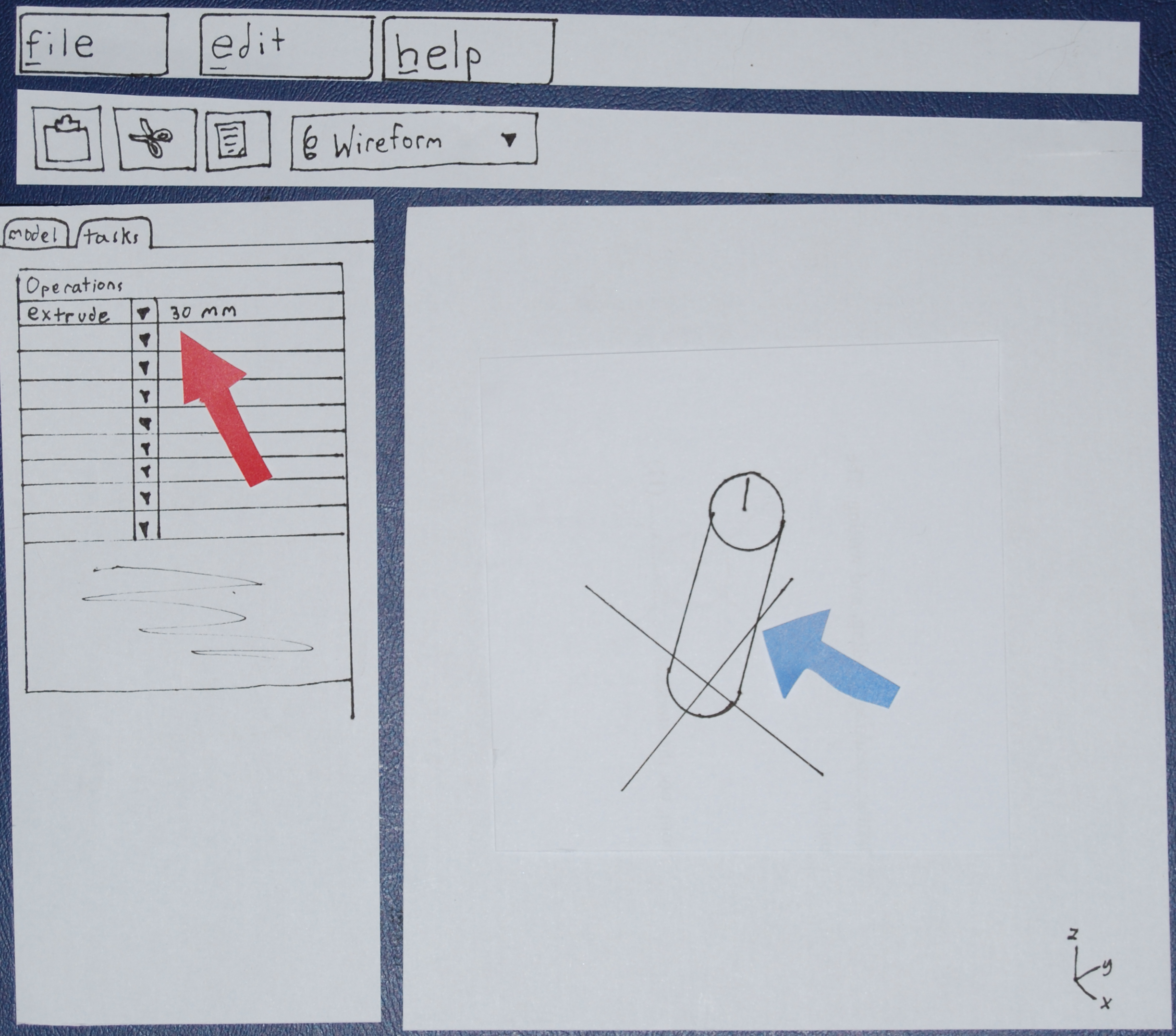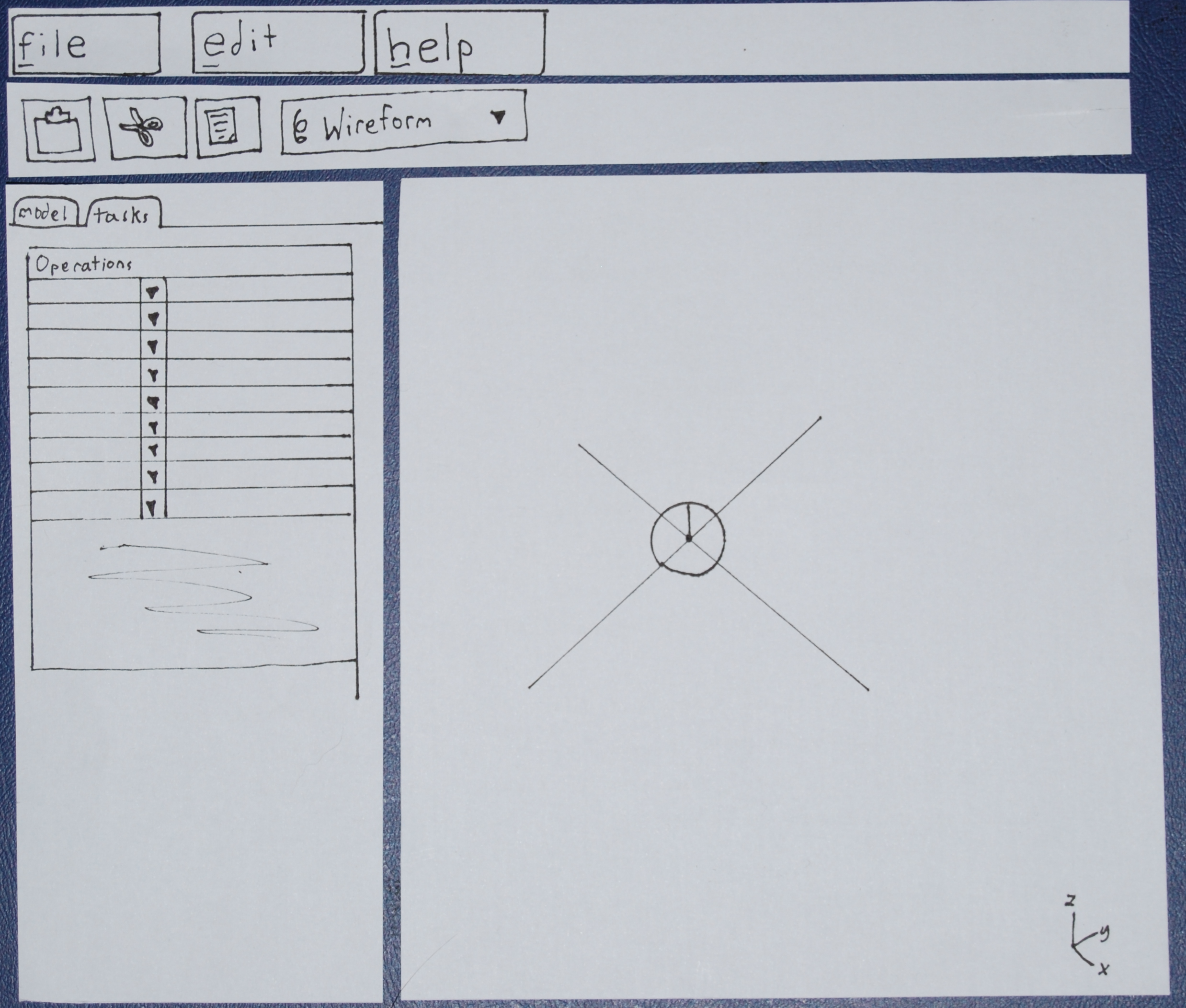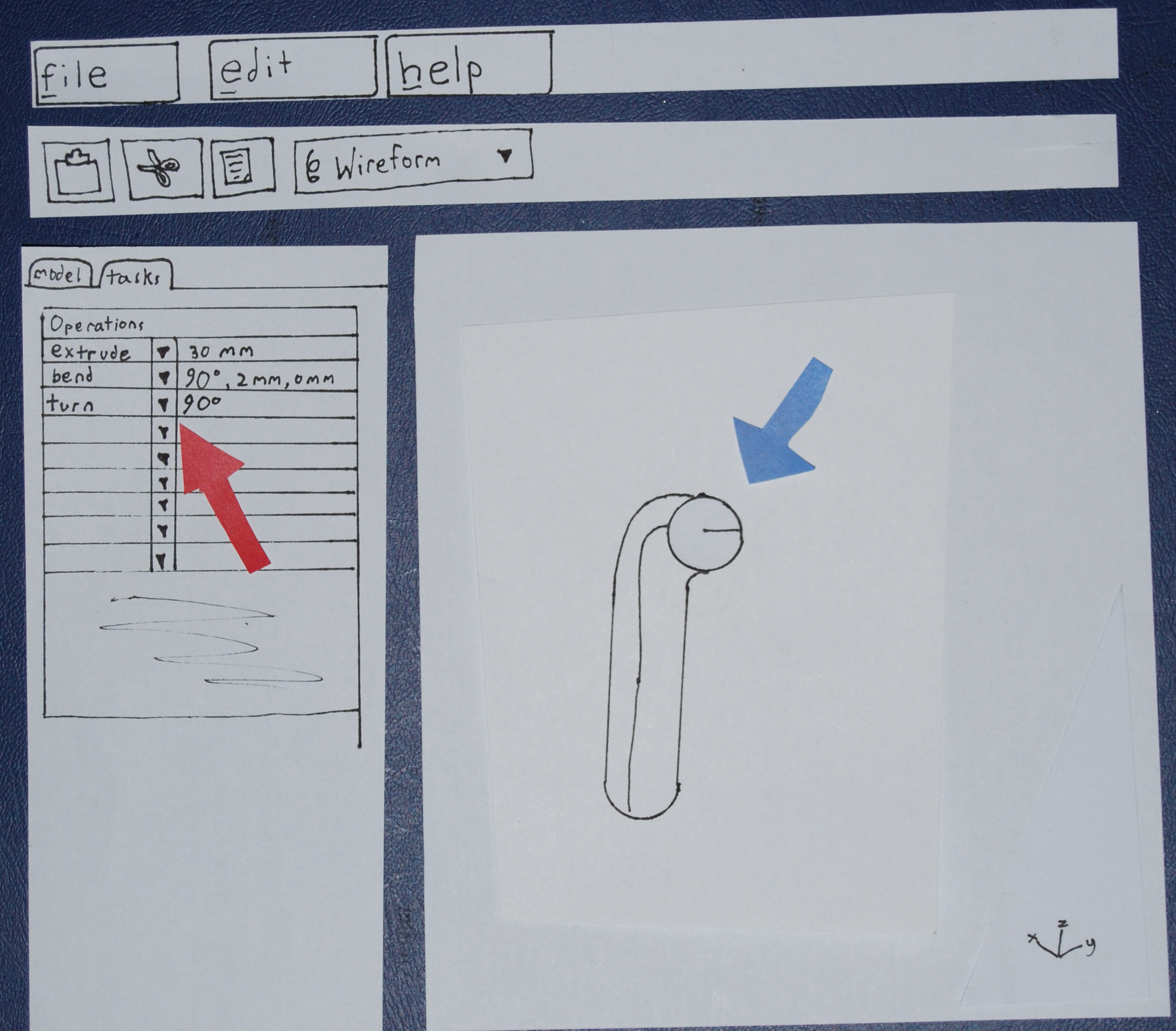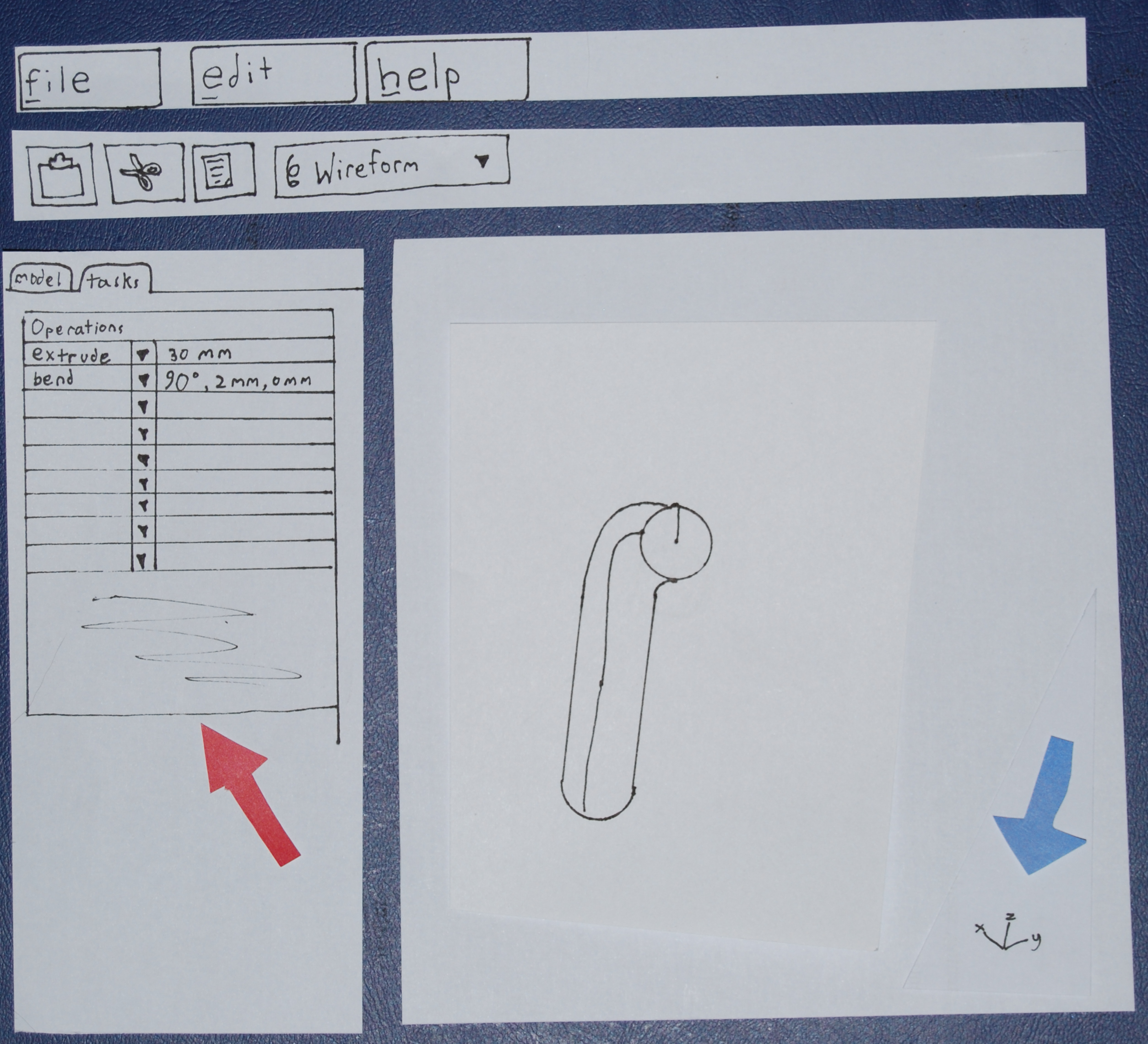 If you were to place a plane upon the end of our wire, and place a perpendicular plane 2mm from the end of our center line then the intersection of the two planes would form our axial rod.