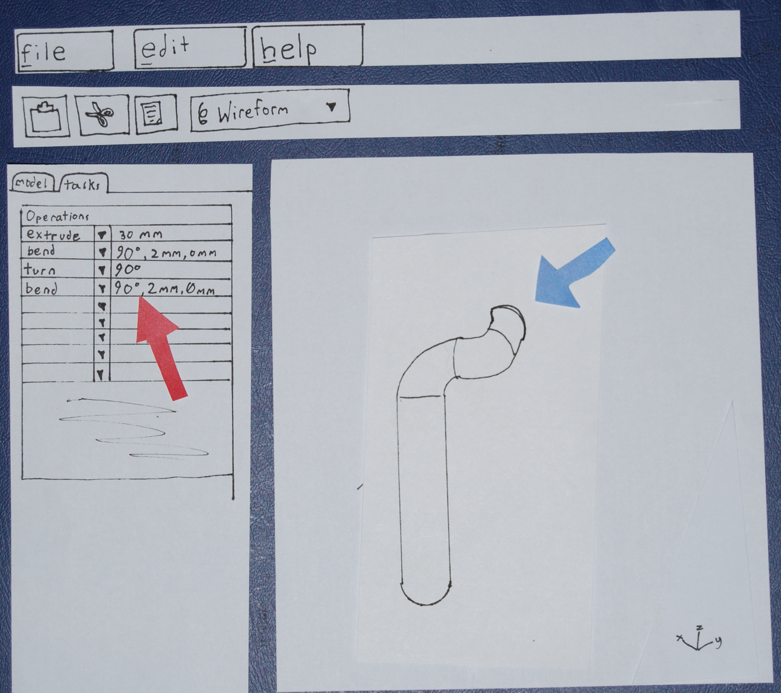 And here we bend by 90 degrees around a virtual bar which has the radius of 2mm.